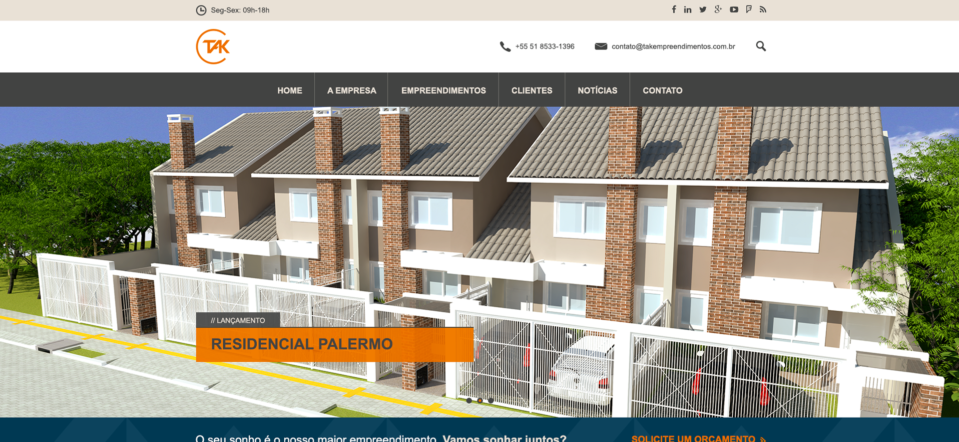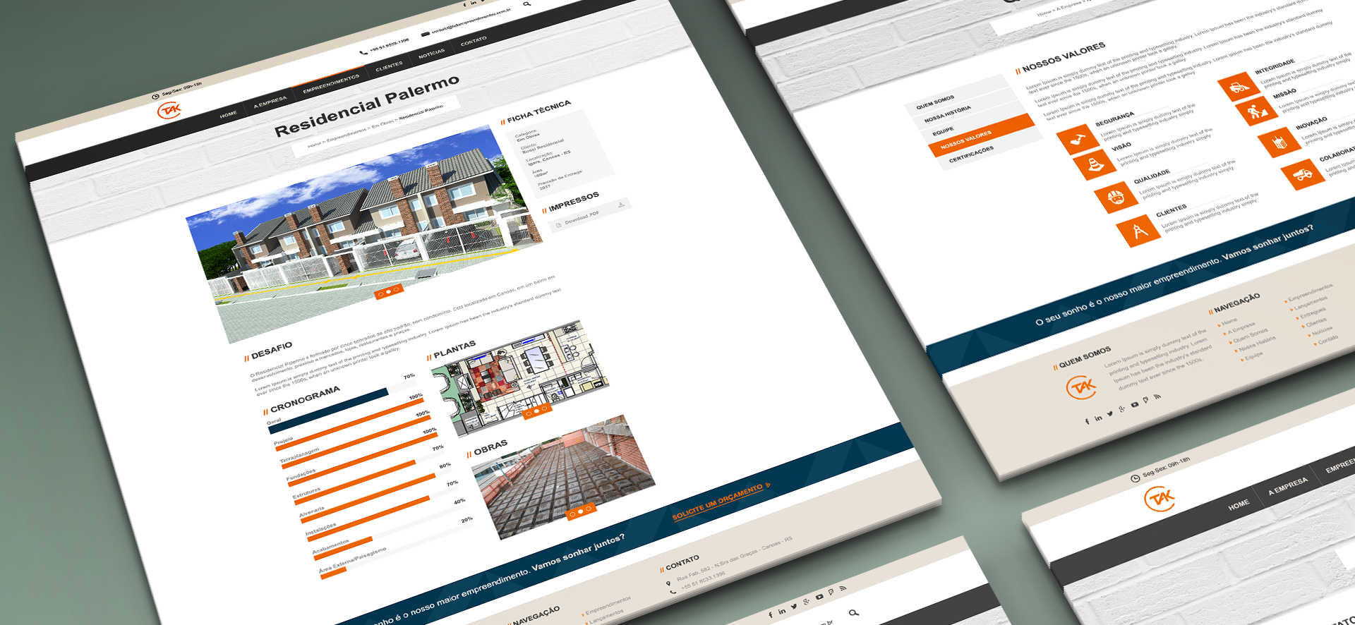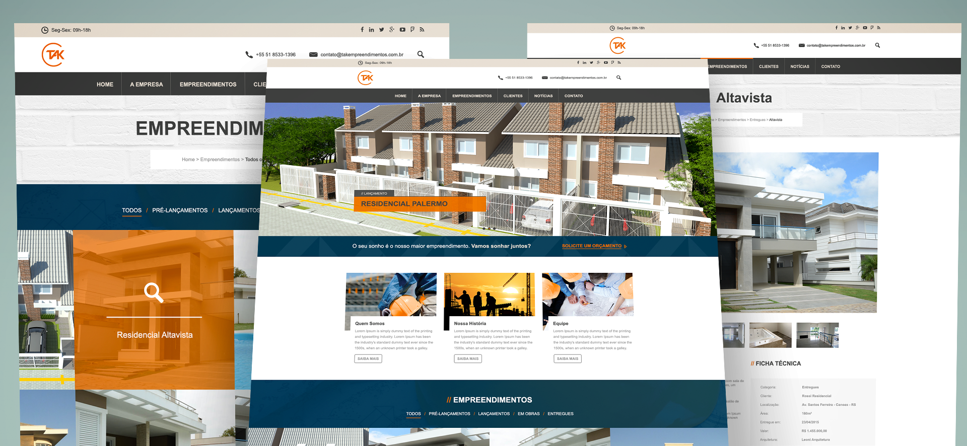 Criação do site institucional da Tak Empreendimentos em WordPress e HTML Responsivo.