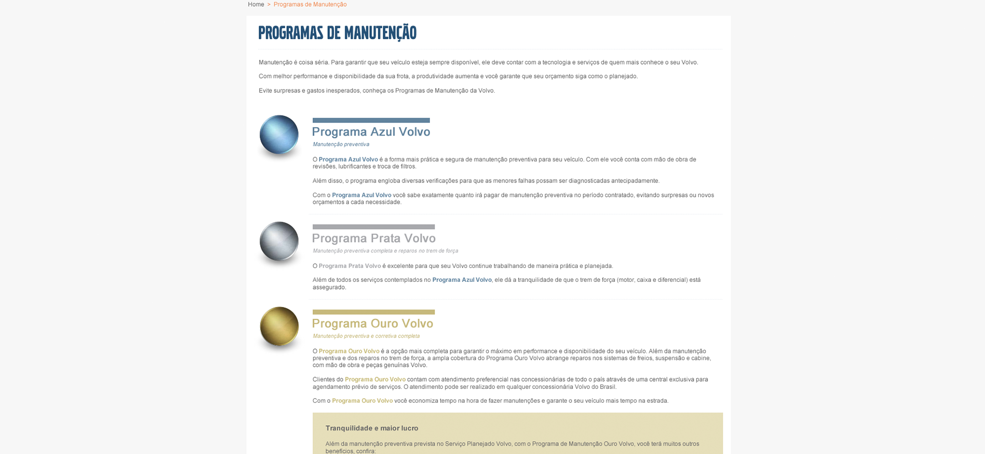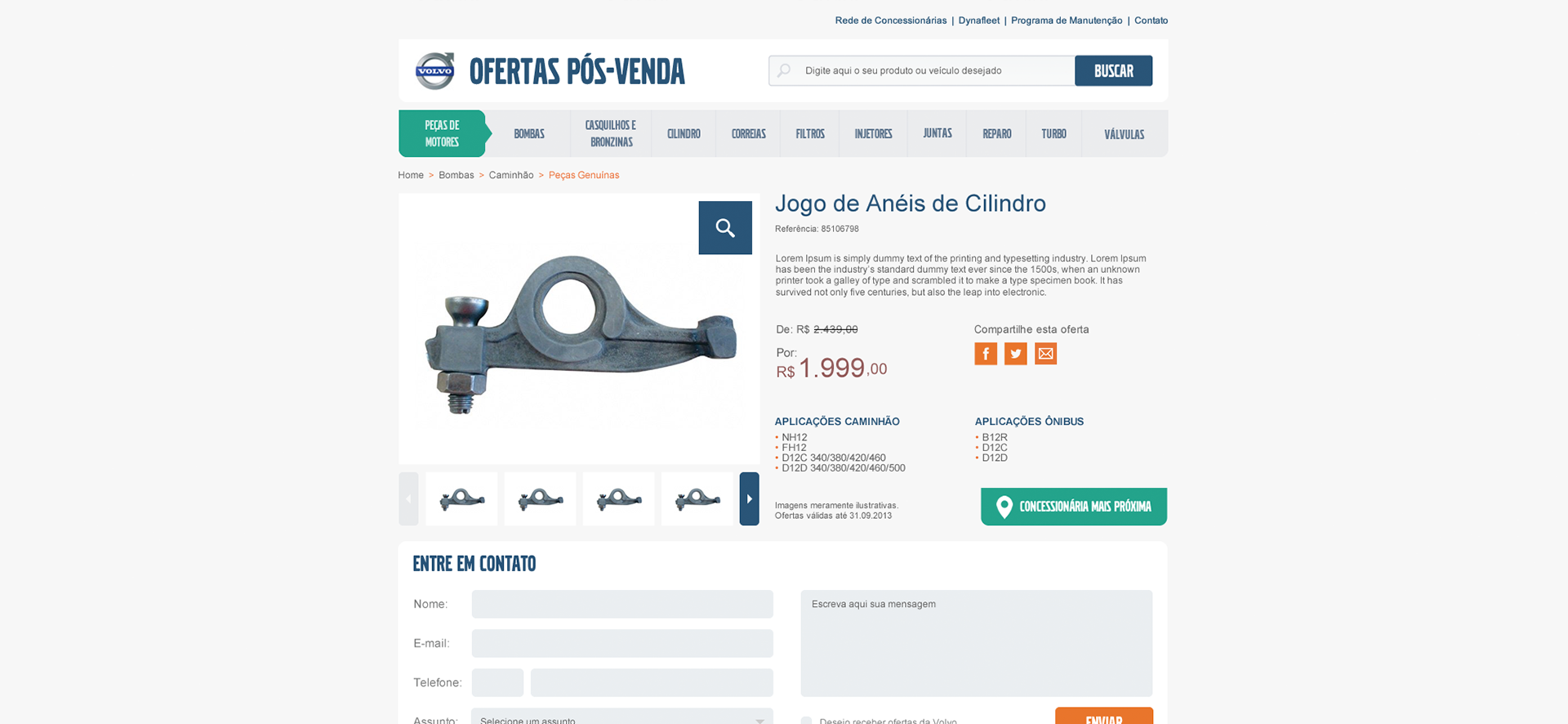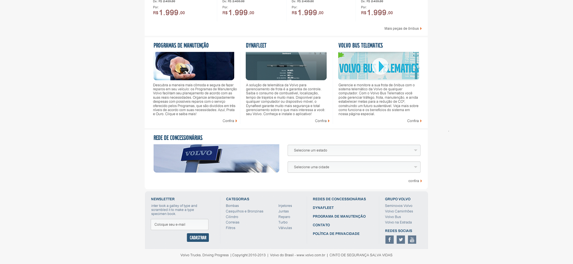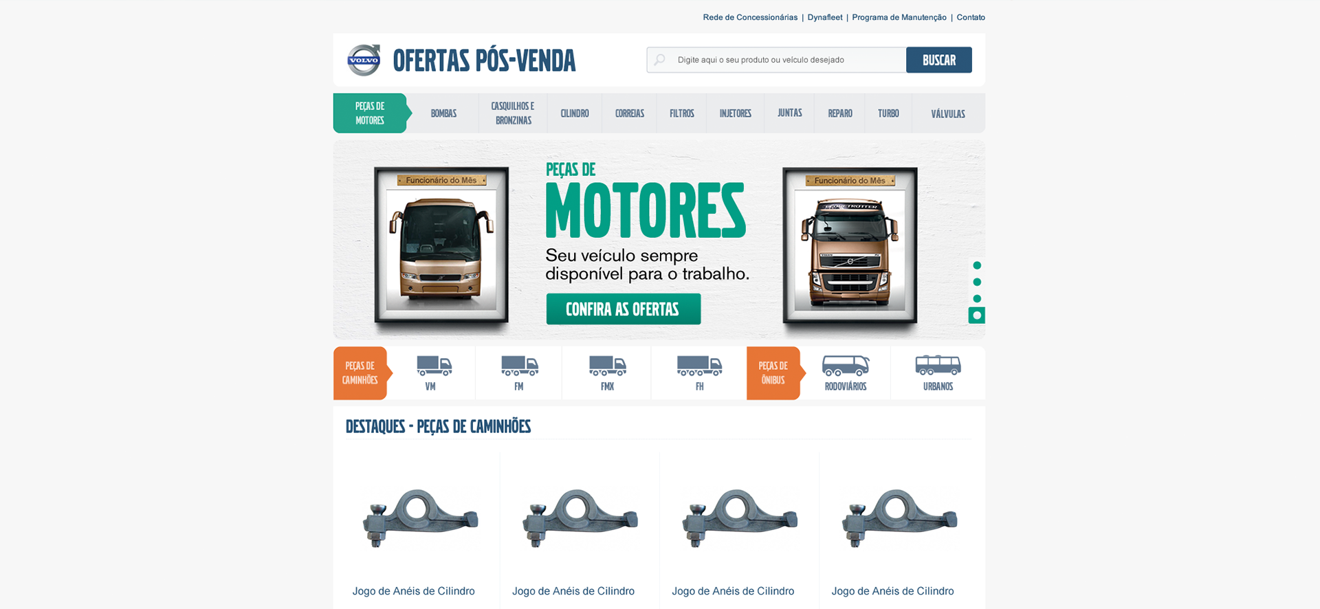 Criação do layout do site Ofertas Pós Venda da Volvo Caminhões para a Agência Cadastra.